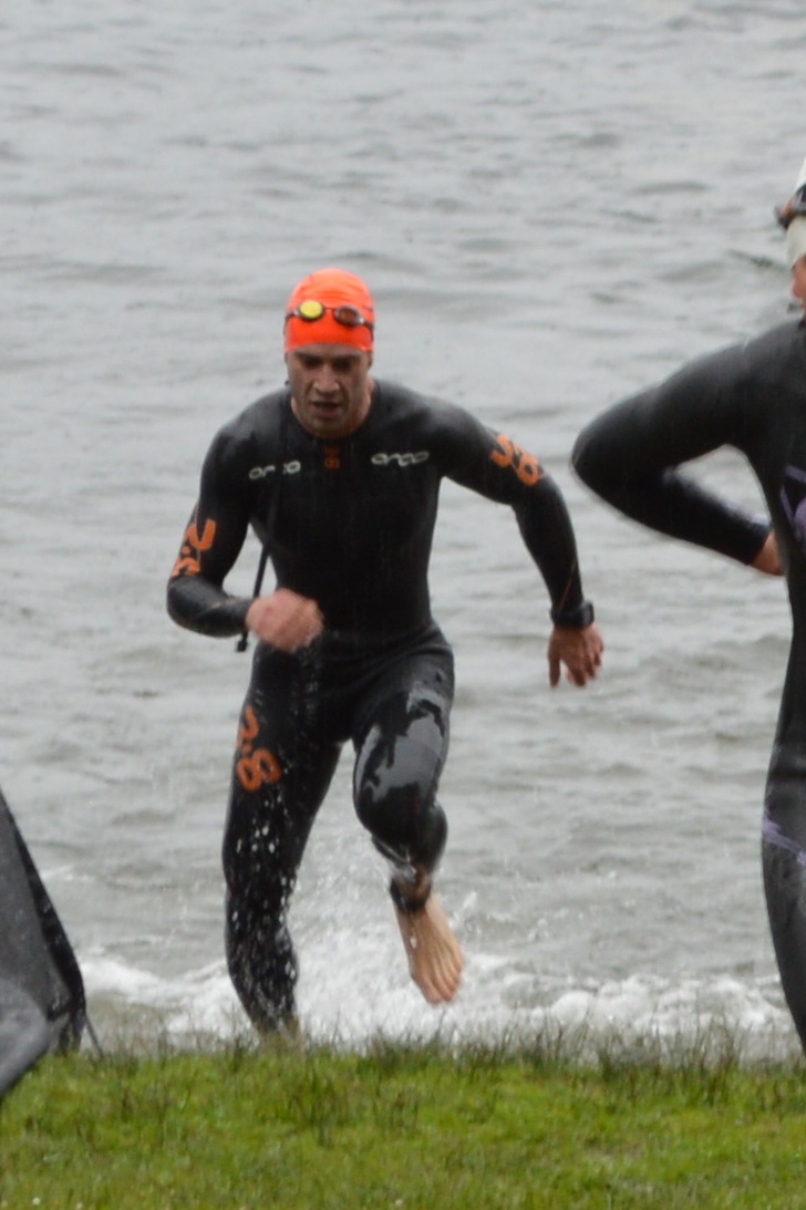The Bike: My favourite. It’s always a big confidence boost, because – having come out of the water relatively late – I then spend the next 2.5 hours passing people. I realized that I was a bit heavy on the power in the first 10km and eased up knowing that this was a 90km ride, not a 40km ride. I was grateful for all the climbing in the first half of the course because it helped generate body heat while we were being hammered with the rain.